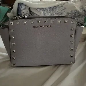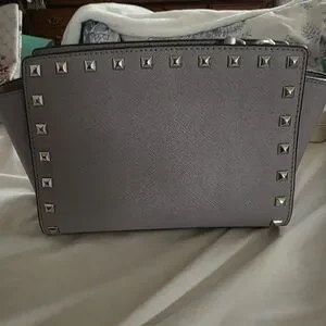 Stylish Michael Kors clutch with silver studs. Perfect for a night out. Sleek and modern design.