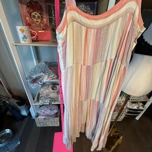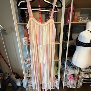 Preloved . Rails. Size medium. $188 org. Chic midi dress with vibrant stripes. Perfect for casual outings. High end brand. No returns, refunds, or regrets 💐
