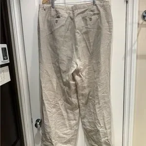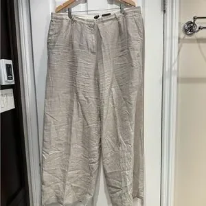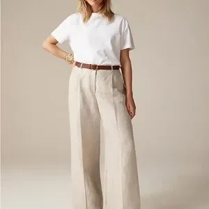 J. Crew wide leg essential pant in linen. Their neutral tone makes them a versatile addition to any wardrobe.