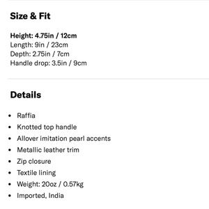 New with tags. Poolside the Josie pearl bag with knotted top handle. Video will follow shortly. Price is not negotiable.