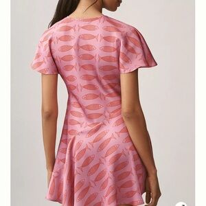 New Anthropologie Pink Red Fish Mini Dress Sardine Summer XXS XS