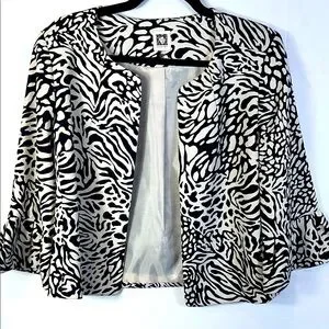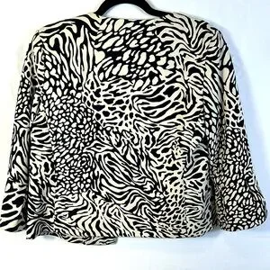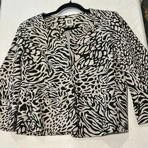 Anne Klein Black and White animal, print jacket size small lined flare sleeve
