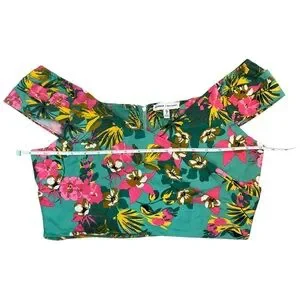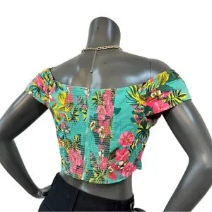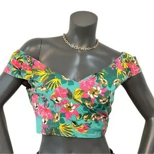 Turn heads and soak up the sun in this Express X Rocky Barnes vibrant tropical floral off-shoulder crop top! Women’s Size M 🌺🌴