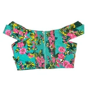 Featuring a sultry sweetheart neckline and flirty off-the-shoulder sleeves, this top is made for summer vibes. The bold, colorful floral print bursts with hot pink, sunshine yellow, and leafy green hues — a perfect match for beach days, festivals, or rooftop cocktails. The fitted bodice hugs your curves just right, while the soft COTTON fabric keeps things breathable and comfortable.