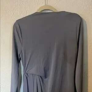 This elegant gray draped dress offers a sophisticated look for any occasion. The soft fabric and unique design make it a standout piece in your wardrobe.
