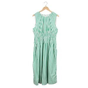 J.Crew Hyacinth Dress Striped Cotton Poplin Bright Clover Green Size Large