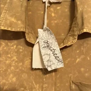 This acid washed gold shirt dress by Mystree features a notched collar and cuffed long sleeves, making it ideal for both casual and work settings. Its warm, light brown yellow hue and comfortable fit ensure it stands out as a versatile wardrobe staple. Functional buttons in front. Can be worn tied or untied. Pocket on front left. Lightweight comfy material. 50% Tencel 50% Modal. Length 36 inches, pit to pit 19 inches