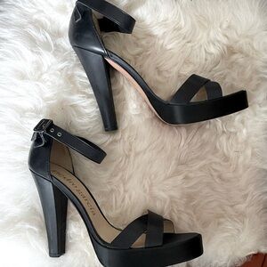 PEDRO GARCIA Black Satin & Leather Platform Ankle Strap Sandals Heels 40 10 NIB