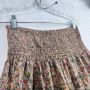 Zury Boho Floral Maxi Skirt Silk Blend Smocked Waist Free Size S Tiered Flowy