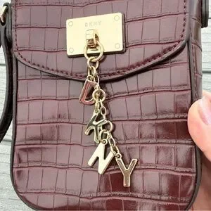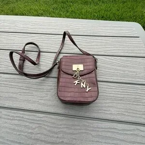 DKNY Rasberry "Cleo NS Phone" embossed Charm Clasp Small crossbody purse
