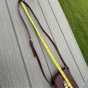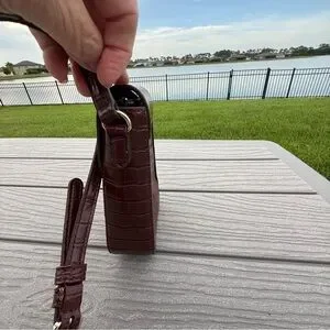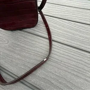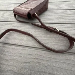 This crossbody bag features a sophisticated mauve hue and a structured design, perfect for adding a touch of elegance to any outfit. The smooth, polished finish of the leather-like material is complemented by gold-tone hardware, creating a striking contrast. Its compact size and classic silhouette make it an ideal accessory for both casual and formal occasions.