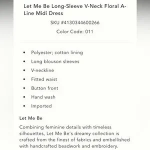 Nwt let me be long sleeve vneck Floral Midi Dress