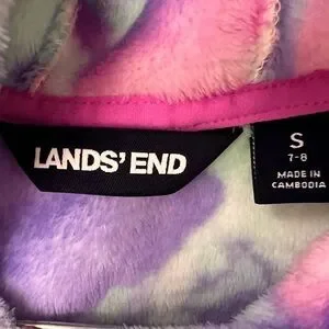 Lands End Girls Hoodie Size Small 7 - 8 Pullover Pink Purple Blue Pocket Soft