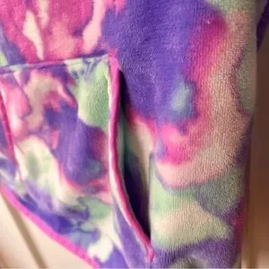 This vibrant kids' hoodie features a fun tie-dye pattern in purple, pink, and green. Perfect for adding a splash of color to any outfit. Soft and comfortable for everyday wear.