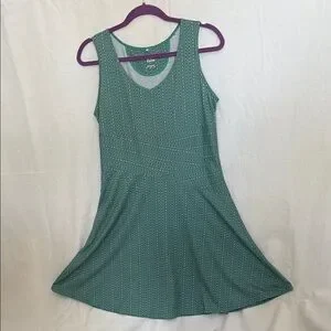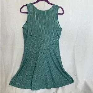 Sporty green scoop neck, sleeveless a-line dress with a subtle geometric pattern Soft and comfy. Perfect for casual days.