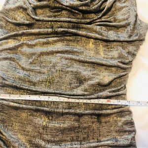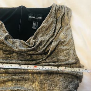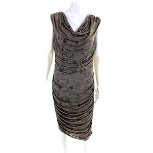 Frank Lyman Size 10 Metallic Knit Draped Cowl Sheath Dress Gold