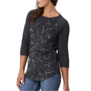 Tentree Women’s Constellation Print Dark Grey Raglan 3/4 sleeve Shirt