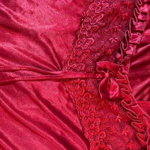 Red Satin Dress with Cross Necklace