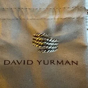 Stylish twisted silver ring by David Yurman. Features sparkling diamond detail. No tags but in perfect condition, comes with David Yurman pouch