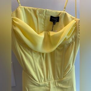 The Bardot gown is a stunning yellow dress designed for cocktail and wedding guest occasions. Featuring a sleeveless, corset top with underwire built in and adjustable straps with a sophisticated cowl neck overlay, this gown exudes elegance and style. Its flowing silhouette and vibrant color make it a standout choice for any special event.