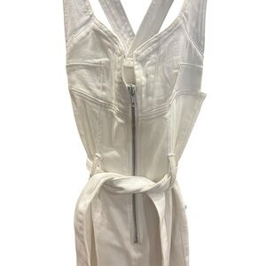 7 For All Mankind NWT Women’s White Denim Zip Front Flare Jumpsuit Size XS