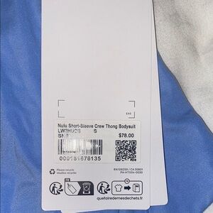 This sleek blue bodysuit from Lululemon Athletica offers a form-fitting design with a scoop neckline and short sleeves. Crafted from a soft, stretchy fabric, it ensures comfort and style for any occasion.