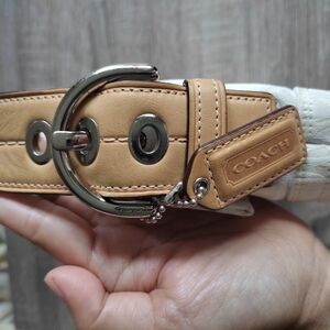 Discover the perfect blend of style and functionality with the Coach White and Tan Shoulder Bag.