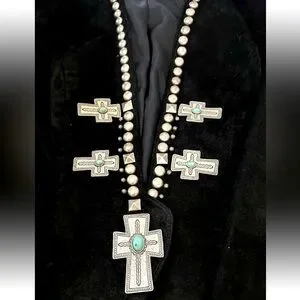 This beautiful jacket from Double D Ranch is made of high-quality suede leather, with a stunning turquoise crosses that are sure to turn heads. The jacket features intricate cross accents and is lined for added comfort. It's the perfect addition to any wardrobe, and a must-have for any Western-inspired fashion enthusiast.
