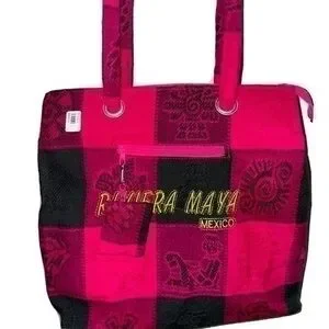 NWT Riviera Maya Mexico tote bag purse with small coin purse in pink and black