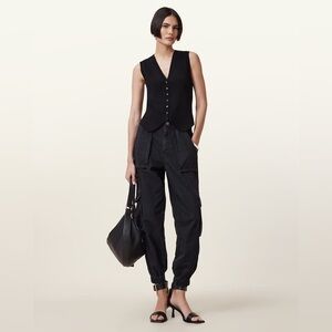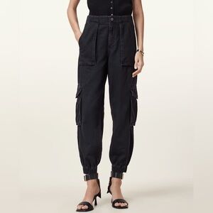 All Saints Freda Denim Black Straight Leg 90’s Cargo Trousers Size 2
