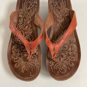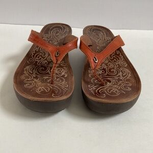 Olukai Paniolo Wedge Women’s Sz 8 Orange Brown Leather Thong Sandals