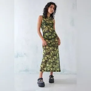 This stunning bodycon midi dress from The Ragged Priest features a captivating green hue, perfect for a night out or cocktail event. The sleeveless design and mock neck add a touch of elegance, while the fitted silhouette ensures a flattering fit.