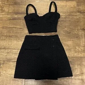 NEW Bershka shimmery black corset bustier wrap skirt set