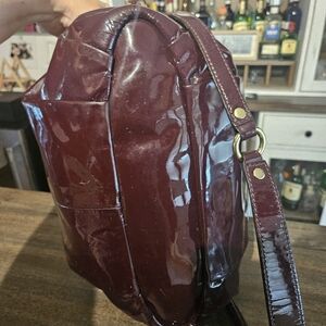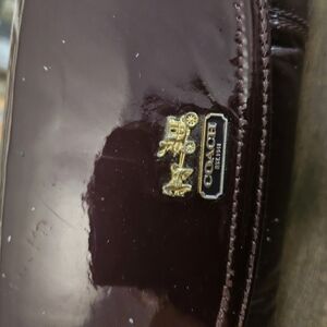 The Coach Madison Patent Leather Lindsey Satchel Bag in Plum is a stylish and versatile handbag perfect for any woman. With a sleek patent leather exterior in a rich plum color, gold hardware accents, and a shoulder strap handle drop of 19 inches, this small satchel/top handle bag exudes sophistication. The beige satin lining adds a touch of luxury to the interior, making it a must-have accessory for any outfit. The Coach Madison collection is known for its quality craftsmanship and timeless design, making this bag a chic choice for everyday use