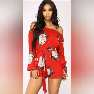 Fashion Nova Red Floral Off-Shoulder Romper NWT