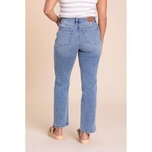 Step into effortless style and comfort with these Judy Blue high-rise straight-leg jeans in a classic dark wash. Designed in Los Angeles, these jeans offer a flattering fit with a slight stretch that moves with you. The high waist and clean straight-leg silhouette make them a wardrobe essential.