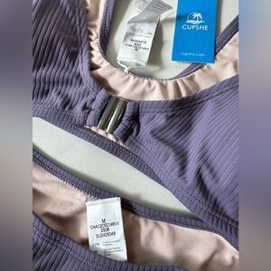 Stylish Cupshe bikini in a deep purple hue. Features a sleek design with a front clasp. Perfect for beach days.