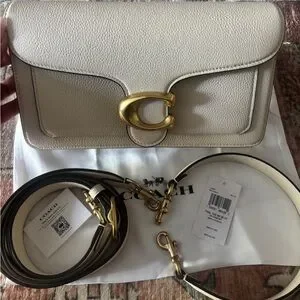 Includes 2 straps (shoulder and adjustable crossbody strap), tags, and dust bag.
