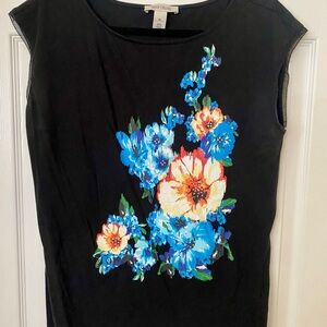 White House Black Market Black and Blue Graphic Sleeveless Tank Top