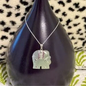 NWT Authentic Green Jade Elephant Pendant with Sterling Silver Details and Sterling Silver Necklace Chain