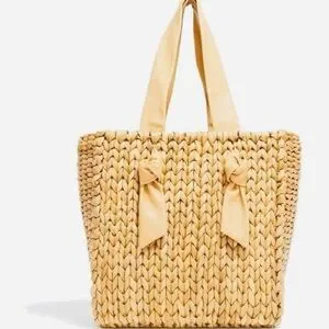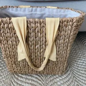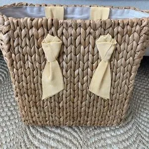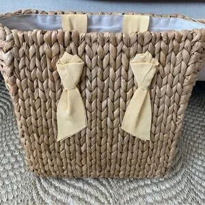 Pamela Munson Isla Bahia Tote with yellow ribbon. Good condition but shows wear as seen in pictures.