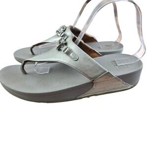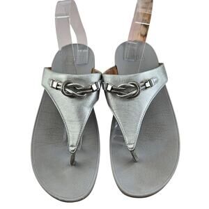 Fitflop Lulu Sandals Womens 11 Metallic Silver Leather Thong Toe Post Chain