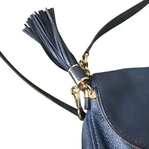 Color: Navy Blue Exterior with Gold Hardware and Tan Interior