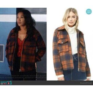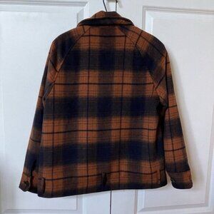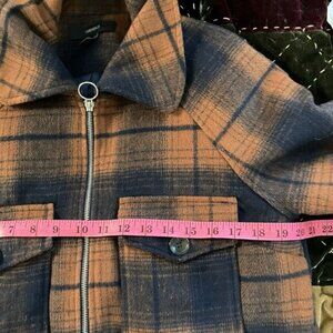 Forever 21 Fleece Plaid Jacket Womens M Full Zip Brown Blue Fall Shacket