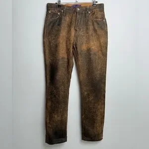 The 750 straight ankle jean is designed with a mid-rise and a zipper fly. Crafted in Italy from Japanese cotton denim that's specially washed and dyed, this pair is finished with a studded leather tab at the coin pocket and a tonal studded leather patch debossed with Ralph Lauren's signature at the back waist. It features a straight leg and ankle length.