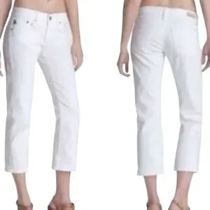 AG Adriano Goldschmied The Tomboy Crop Relaxed Straight Leg Jeans White Size 28