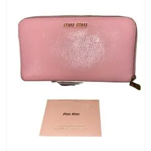 Auth Miu Miu Pink Leather Wallet with miu miu box CLEAN!! AND COA