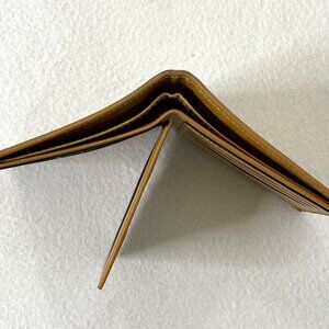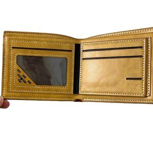Bi-Fold wallet is brown with green trim