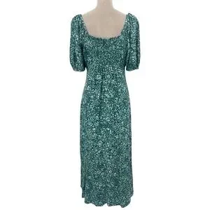 Madewell Puff-Sleeve Sweetheart Midi Dress in Green Ditsy Floral Print - Size 6
