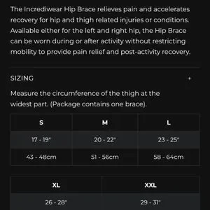 The Incrediwear Hip Brace relieves pain and accelerates recovery for hip and thigh related injuries or conditions. Available either for the left and right hip, the Hip Brace can be worn during or after activity without restricting mobility to provide pain relief and post-activity recovery.